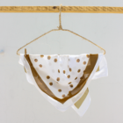 La tela es un chifón recuperado (100% poliéster) obtenido de una empresa dedicada a rescatar excedentes textiles. El hilo con el que se cose es 100% poliéster.