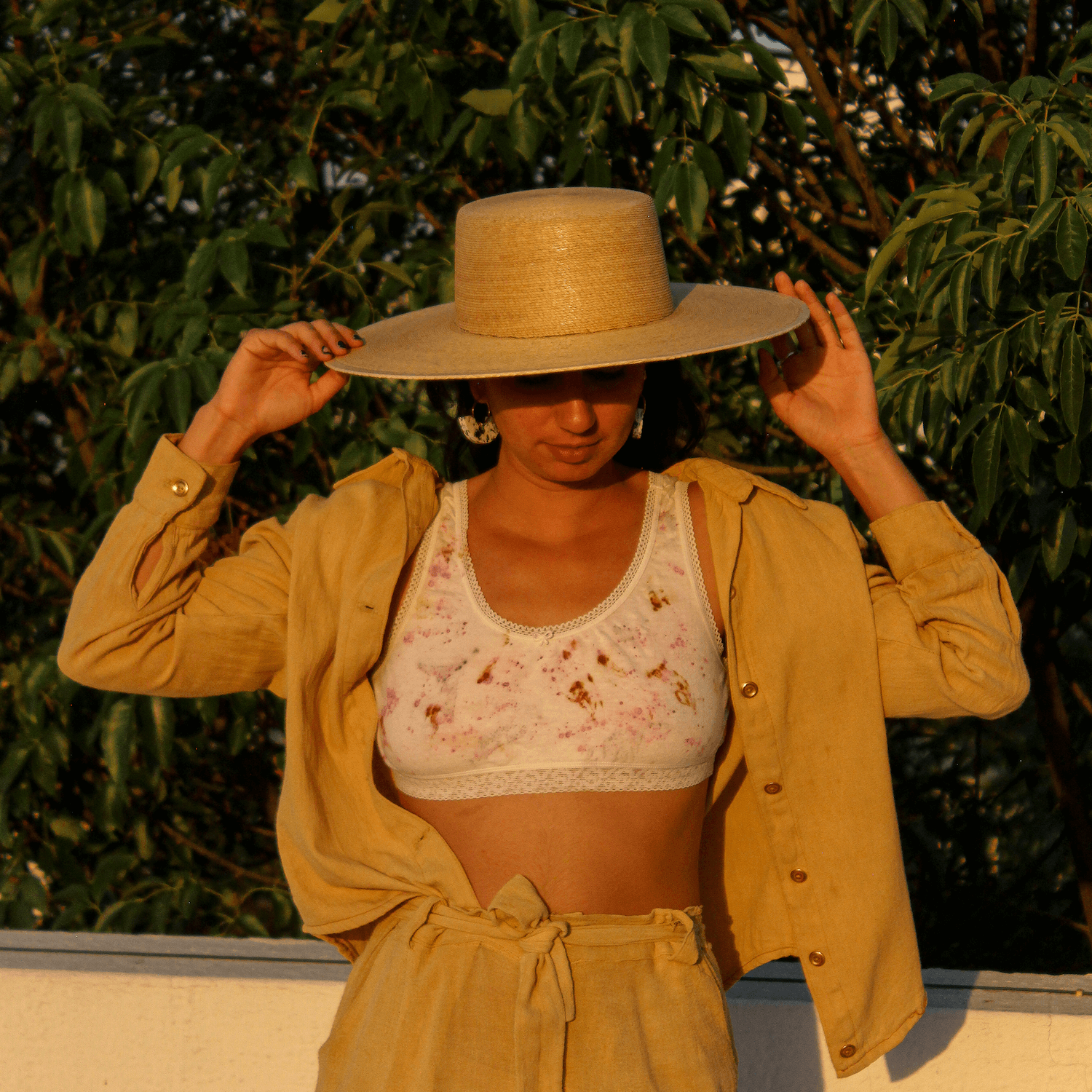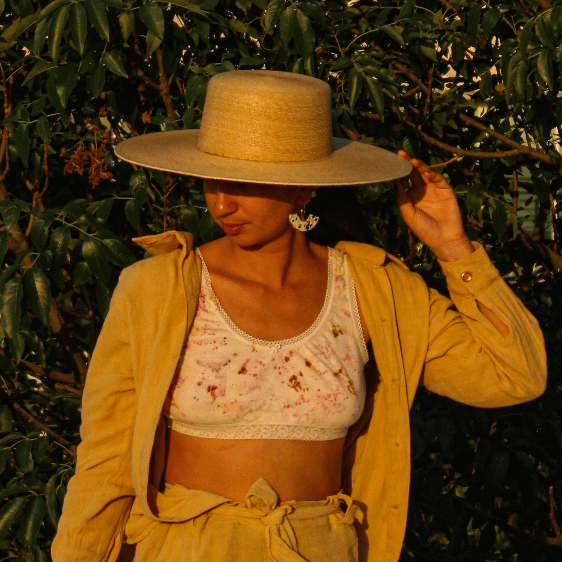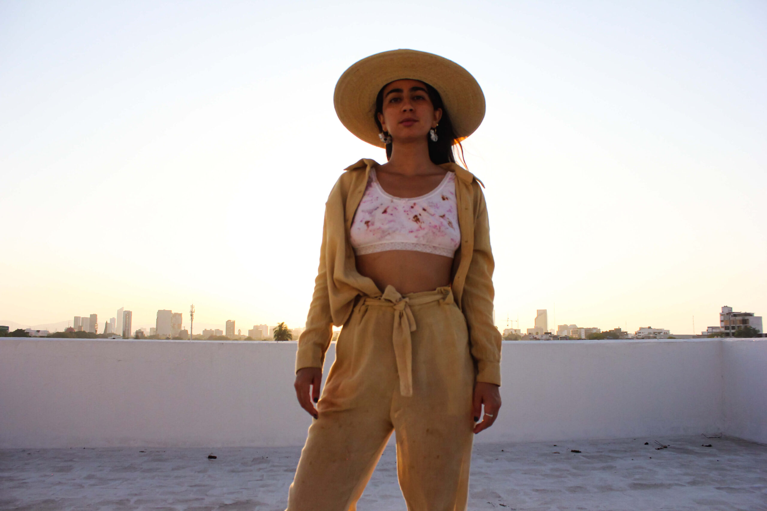 La palma llega a Sahuayo, Michoacán en forma de trenzas y es aquí donde se transforma en sombrero utilizando máquinas de coser y planchas de calor como herramientas y otros materiales naturales para dar las terminaciones. MORENO: Lo que determina el color ligeramente más oscuro es la cantidad de tiempo dentro de la plancha de calor.